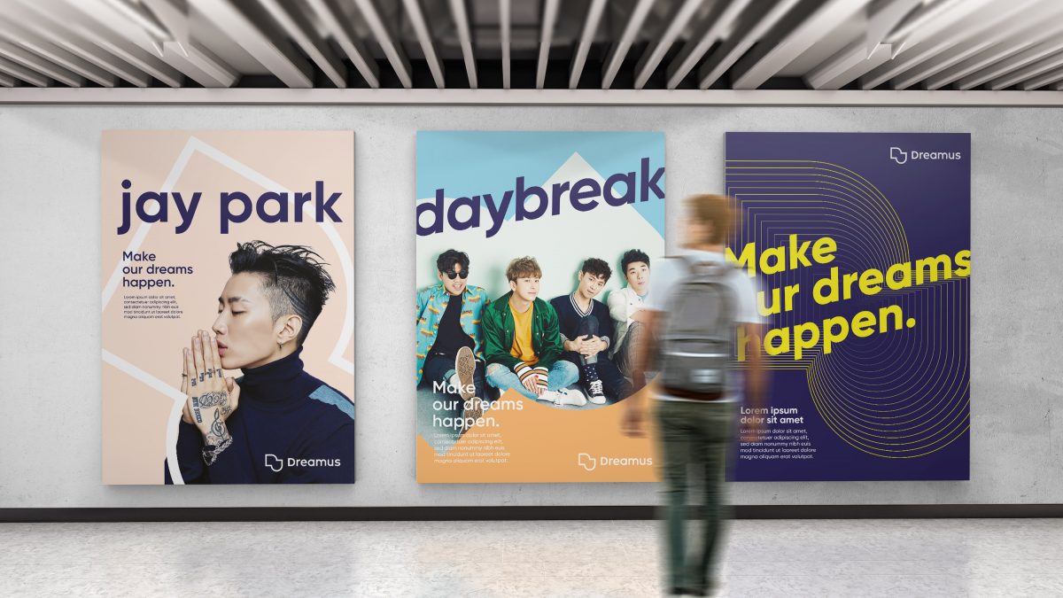 Dreamus CI(Corporate Identity) is developed as a signature with a distinctive symbol and logotype.?Through a unique shape reminiscent of D and U, the symbol represents a new cultural ecosystem that the company aspires,?in which creators and consumers live together. Additionally, we’ve created a visual system which can be flexibly used on various applications.