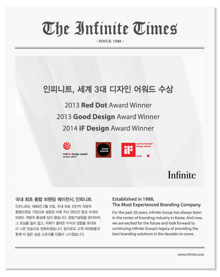 The Infinite Times was developed as an online e-mail templates for delivering news from Infinite, one of the most experienced branding agency in Korea that I had worked until last year. The classic newspaper inspired concept came from the agency’s historical aspect with 26 years of experience in branding industry.