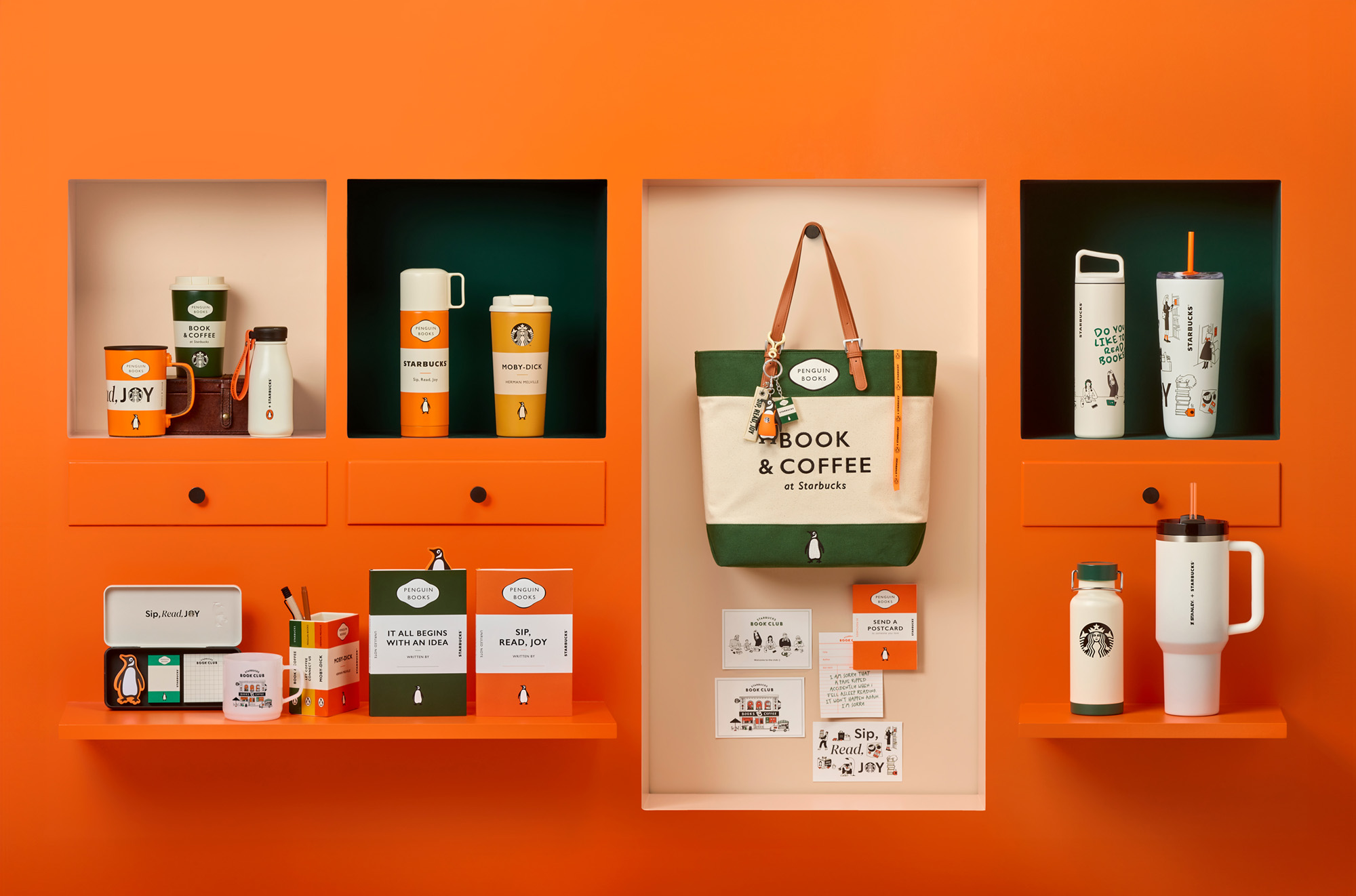 The campaign was created in collaboration with Penguin Random House, an iconic publisher that has shaped global publishing culture since 1935, and featured artwork by illustrator JJangseoyo Witty, narrative-driven copy was written and applied directly across the product designs, allowing each item to function as a small piece of storytelling rather than simple merchandise.